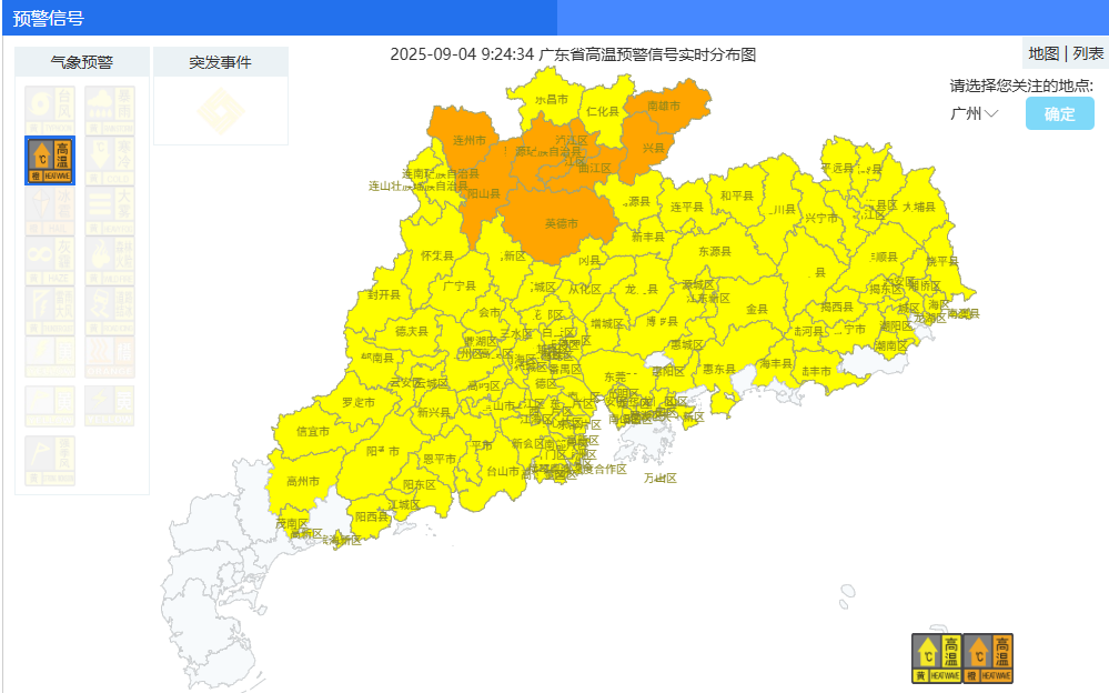 广东共有92个高温预警生效中