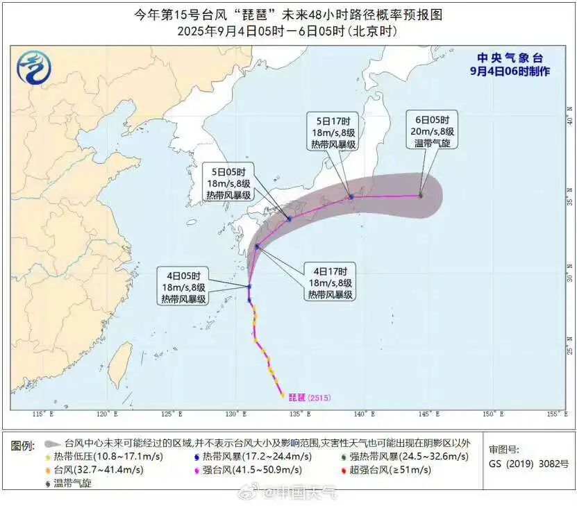 预计,“琵琶”将以每小时25-30公里的速度向北偏东方向移动,强度变化不大,逐渐趋向日本九州岛南部洋面,4日夜间转向东北方向移动。受其影响,4日白天至夜间,东海东部偏东海域将有6-8级风,阵风9级。